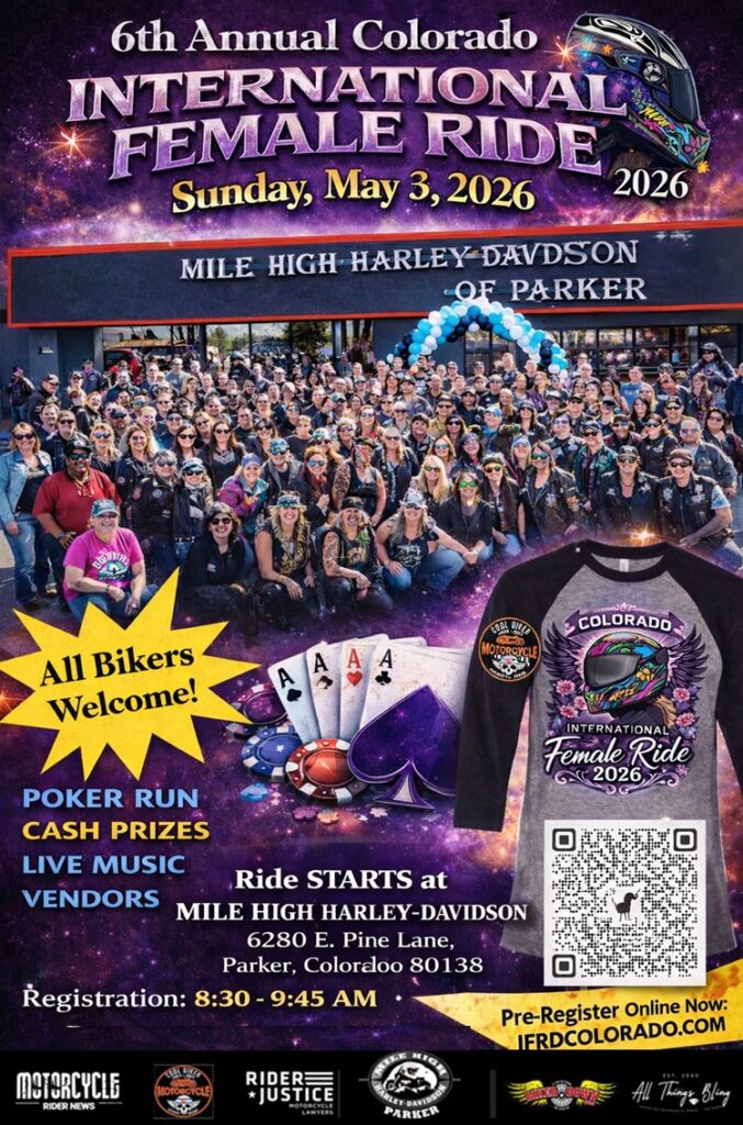 There’s something about early May in Colorado—the roads start calling a little louder, the bikes come out a little more often, and the riding community reconnects after winter. On Sunday, May 3, 2026, that energy comes together for the 6th Annual Colorado International Female Ride, a celebration of women riders, shared roads, and the freedom that only two wheels can offer.