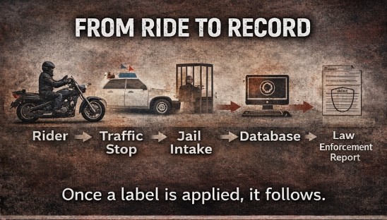 For riders, this is especially dangerous. Motorcycle communities overlap. Events are public. Riders from different backgrounds and affiliations often share the same roads, gas stations, restaurants, rallies, and charity events.