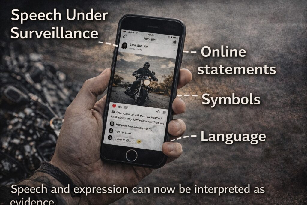 Motorcyclists already joke, exaggerate, use slang, and post bravado online. Most of it is harmless. But when laws begin to treat speech and symbolism as suspicious by default, people start self-censoring—not because they did anything wrong, but because the risk becomes unpredictable.
